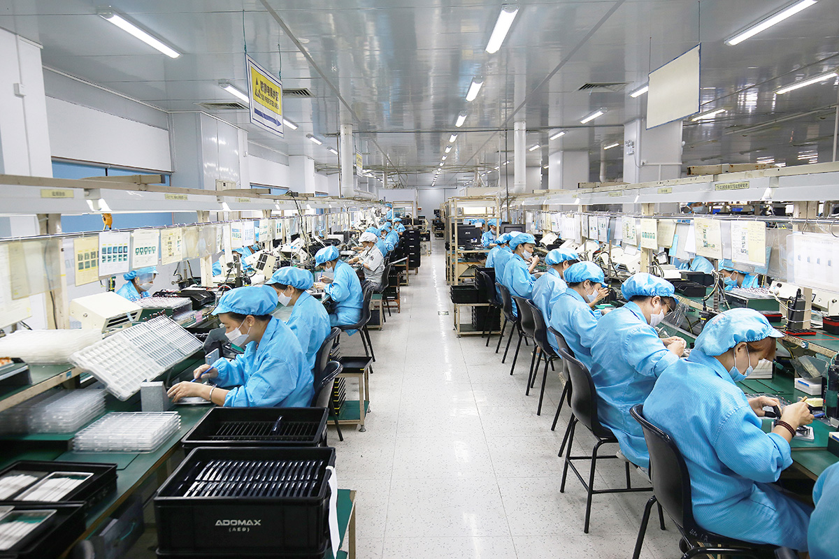我們的工廠位於中國廣東省肇慶市. 有兩個廠, 一廠的廠房面積34000平方米,二廠30000平方米, 員工總人數500人. 生產製程設備有塑膠射出生產線,噴漆烤漆生產線,SMT & DIP生產線,組裝測試包裝生產線. 受客戶委託的OEM&OEM的產品,可由外觀射出生產到包裝測試出貨,為客戶提供一條龍的生產服務. 在工廠管理上擁有ISO 9001認證. 主要生產的產品 : 滑鼠、鍵盤、行動電源,電源供應器等,另有其他成品和零部件組裝代工生產和射出噴烤漆代工生產.