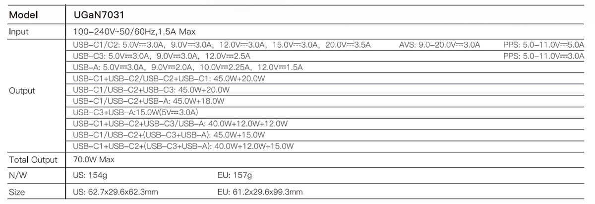 UGaN7031 70W GaN Laptop Wall Charger GaN technology70W High-speed universal charger4 Ports smart distributionDigital display, real-time monitoring of powerPocket size with foldable plug
